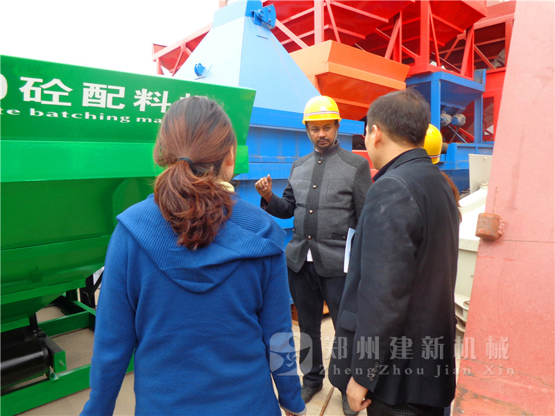 一排排整齊的配料機、攪拌機,展示著鄭州建新公司雄厚的實力,也讓來自埃塞俄比亞的客戶真真切切的感受到了建新混凝土攪拌站設(shè)備的技術(shù)、工藝,無微不至的服務(wù),更是堅定了客戶與建新公司合作的信念。